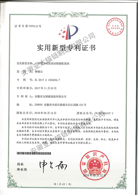 一種剪力銷型系泊錨鏈配重塊