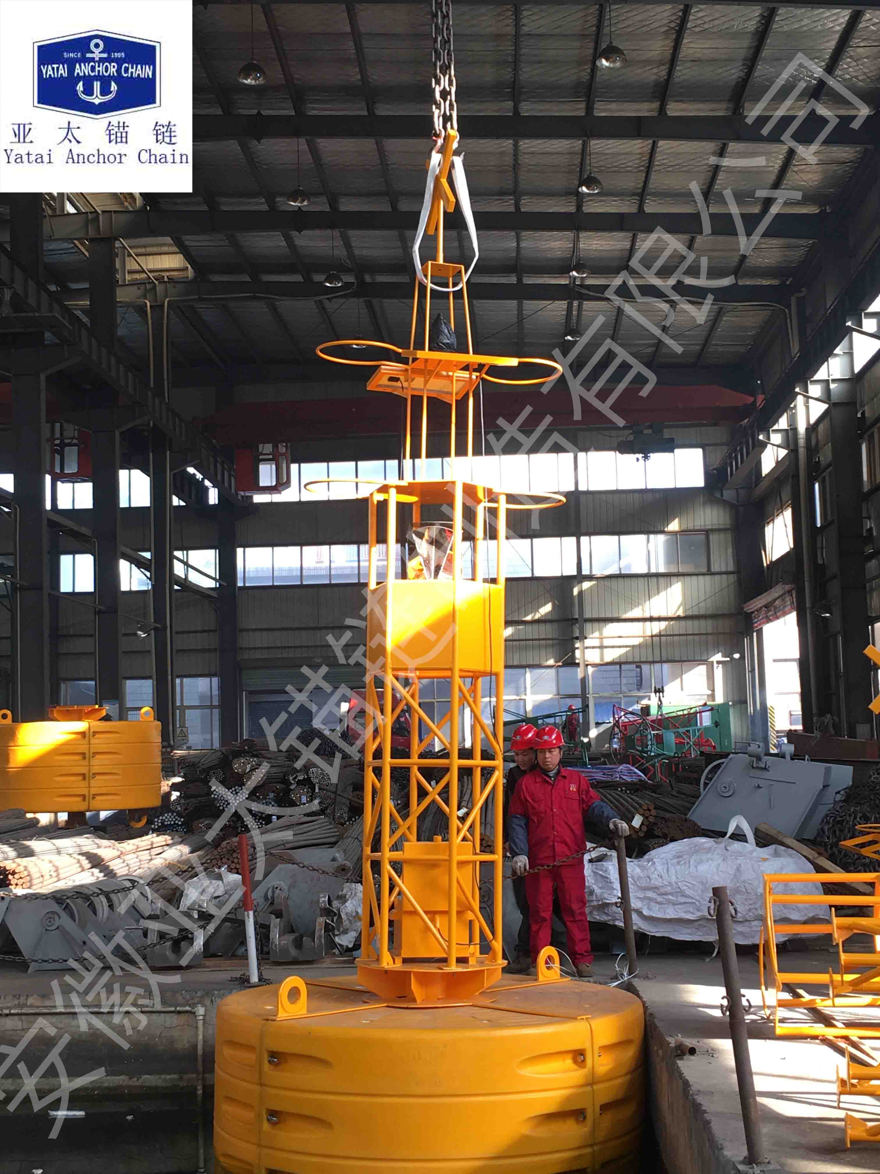高分子聚乙烯浮標(biāo)浮標(biāo)是由旋轉(zhuǎn)成型制造,防紫外線聚乙烯材料,內(nèi)部由聚苯乙烯泡沫填充并用不銹鋼結(jié)構(gòu)加強。要求的顏色色素要在塑造之前注射到聚乙烯材料里面。這樣會延長浮標(biāo)表面顏色的壽命并且不需要噴漆。和鋼制浮標(biāo)比起來,聚乙烯浮標(biāo)更輕(便于安裝),還具有防碰撞的特性。而且由于具有彈性的屬性,可以吸收撞擊力并抵擋相對更強的撞擊。這種浮標(biāo)同樣也是免維護(hù)并具有更長的使用壽命。