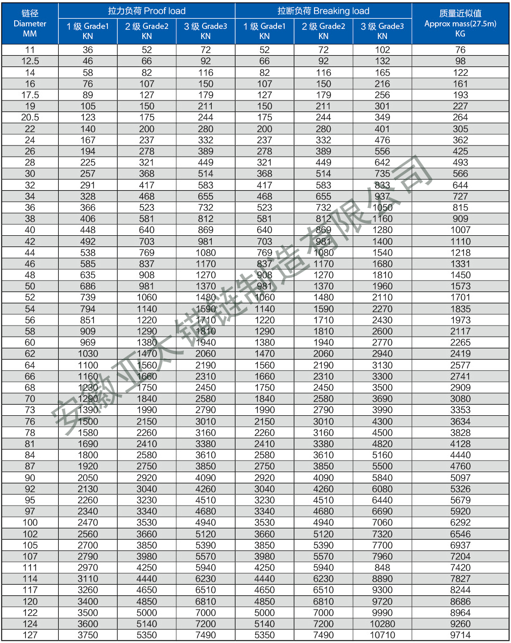 我廠可生產(chǎn)直徑Φ12.5mm-直徑Φ107mm的有檔、無檔、二、三級船用錨鏈。Φ12.5mm-Φ53mm浮標鏈;Φ12.5mm-Φ52mm轉(zhuǎn)環(huán);Φ12.5mm-Φ65mm連接卸扣;Φ12.5mm-Φ65mm末端卸扣;Φ12.5mm-Φ70mm各種材質(zhì),各種規(guī)格非標準錨鏈、不銹鋼鏈、加大環(huán)、圓環(huán)、三角環(huán)、環(huán)鉤等。