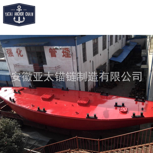 船體中間位置設(shè)有安裝錨燈的燈架,所述燈架兩側(cè)旁設(shè)有數(shù)個十字樁,所述船體的頭部還設(shè)有帶纜樁,所述船體的兩側(cè)各設(shè)有一對系環(huán);